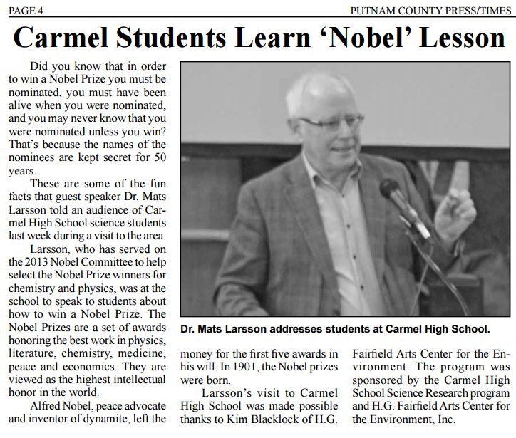 Dr. Mats Larsson "How to Win A Nobel Prize" Media Coverage